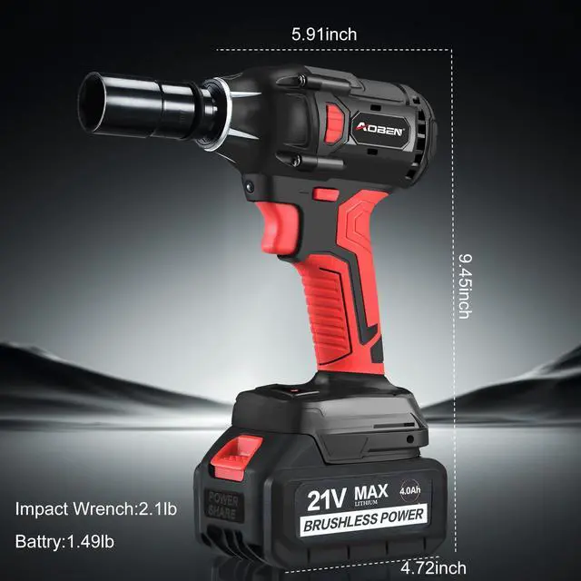 Brushless motor powerful torque Perform wide range of tire rotation,metal/wood construction,mower blade,motorcycles loosening/fastening applications.