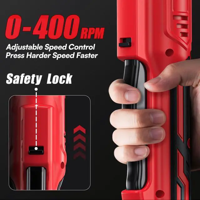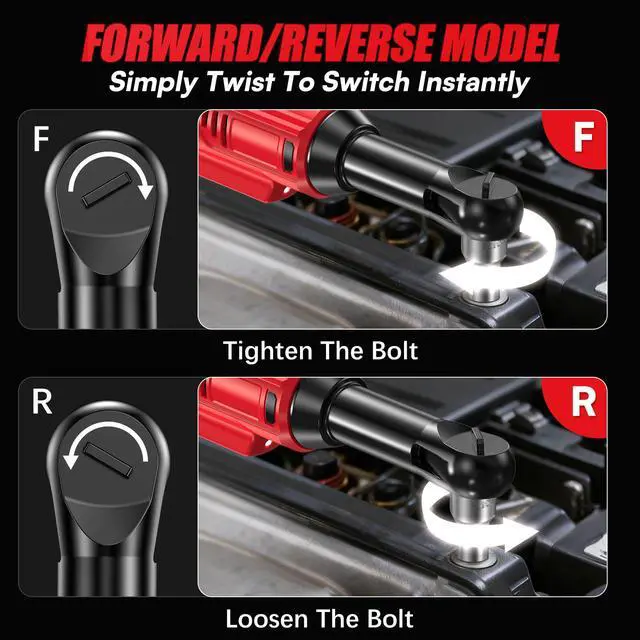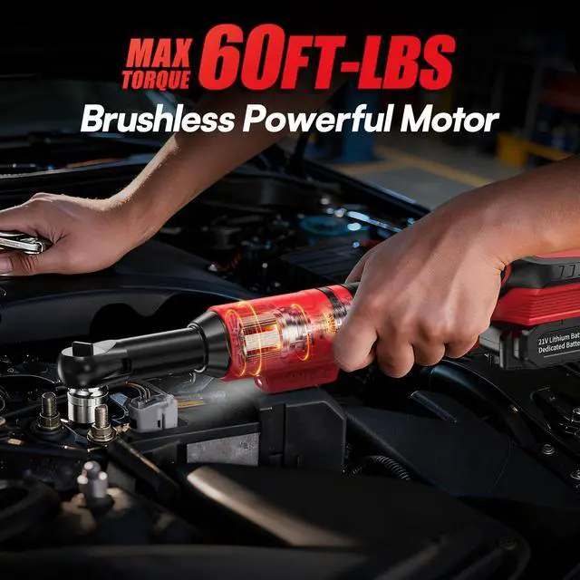 [21V Powerful Brushless Motor & 60FT-LBS Torque]3/8-inch Cordless ratchet delivers 60 lb-ft (80 Nm) of torque with a variable-speed trigger operating at 400 RPM. The harder you press, the faster it spins. Effortlessly tighten and loosen nuts for automotive maintenance, construction sites, or home repairs.