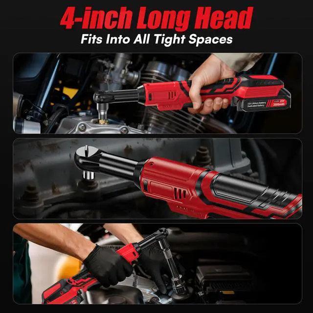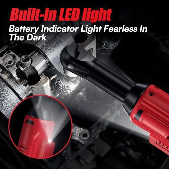 [Extended Head for Tight Spaces]Extended electric wrench features a 4-inch extended neck and a compact 3/8-inch drive head, crafted from premium alloy materials to eliminate concerns about head breakage, while weighing only 3 pounds. Brushless ratchet wrench excels in deeper or narrower spaces inaccessible to traditional wrenches. Additionally, the insulated soft grip absorbs impact during operation, reducing hand fatigue for effortless work.
