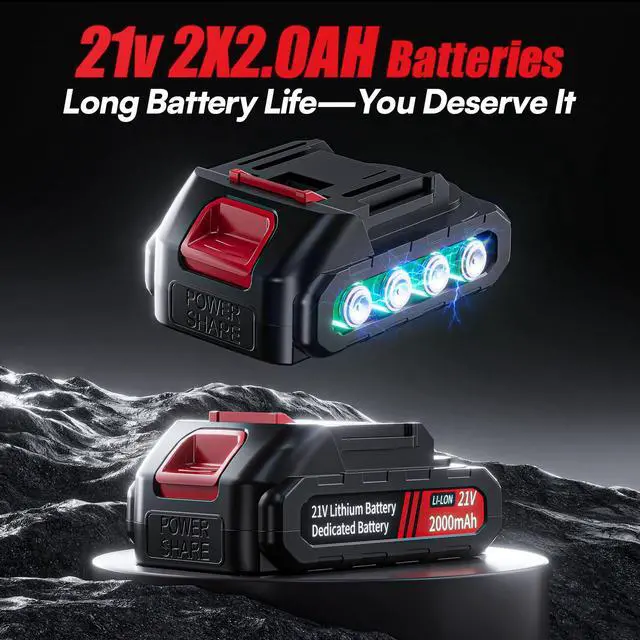 [2X 2000 mAH Batteries]Power ratchet wrench comes with two 21V 2000mAh batteries and a rapid charger. Each battery delivers over 40 minutes of runtime. Ideal for continuous operation, it reduces strain on individual batteries, extends the tool's overall runtime, and maximizes efficiency and longevity.