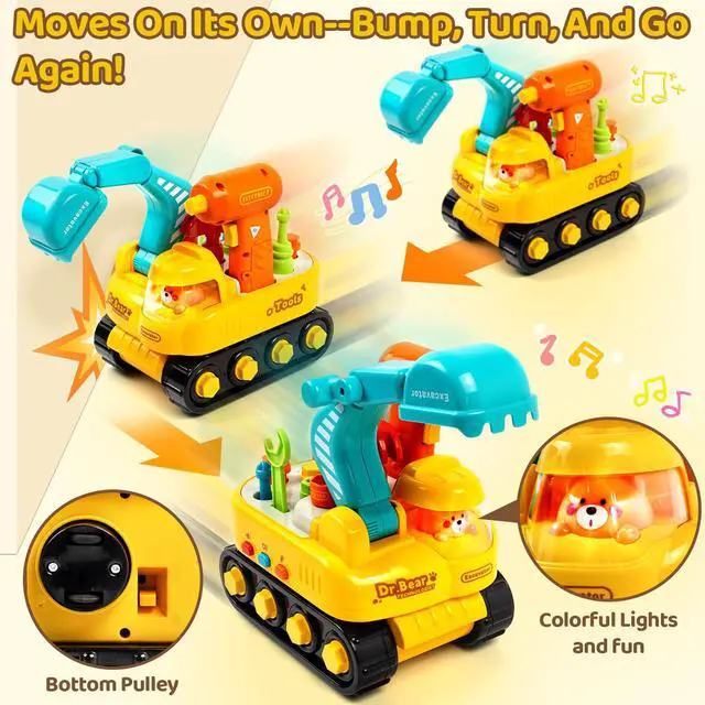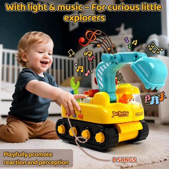 Toys for 2 Year Old Boys, Toddler Tool Set, Excavator Take Apart Toys with Electric Drill, Screwdriver, Wrench, Learning Pretend Construction Toy for 2 3 Years Old Kids Birthday Gift, Musical, Light