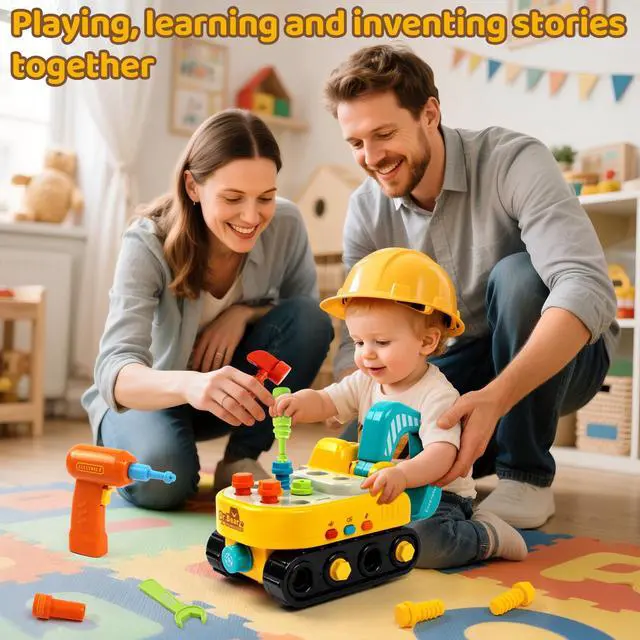 2-in-1 Take Apart Excavator Toy: This multifunctional excavator toy combines a construction vehicle with a toddler tool set. Kids can assemble, disassemble, and rebuild the excavator using the included tools, creating a fun hands-on experience that encourages curiosity and imaginative construction play for toddlers ages 1-3.