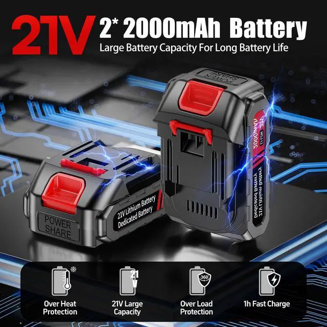 2X 2000 mAH BATTERIES- The 21V power ratchet wrenches comes with two 2000 mAh batteries and a fast charger that lasts up to 40+ minutes each! compared with other 12V and 18V batteries, it can extend the working time by more than 50%.You can seamlessly alternate their use, ensuring uninterrupted workflow for extended projects.