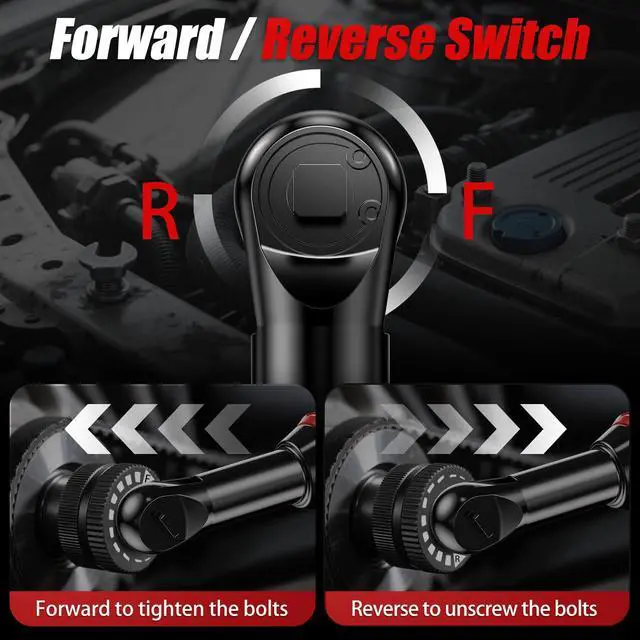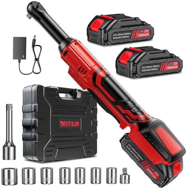 21V BRUSHLESS MOTOR&80 N.m TORQUE -3/8''cordless ratchet wrench is driven by a 21V brushless motor60 Ft-lbs (80 N.m) of torque 60% more efficient than ordinary ratchet. Equipped with a 400RPM variable speed trigger,the harder you push, the faster it gets.Devtblun electric ratchet can meet your requirements for various light industries.