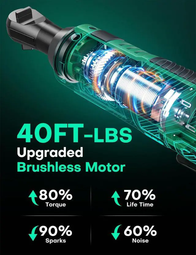 With a max torque of 40 ft-lb at 400 RPM, this ratchet wrench allows for rapid bolt fastening and loosening, saving you valuable time and effort. The high-speed rotation combined with the ergonomic design ensures smooth operation and reduces operator fatigue, making it ideal for extended use.