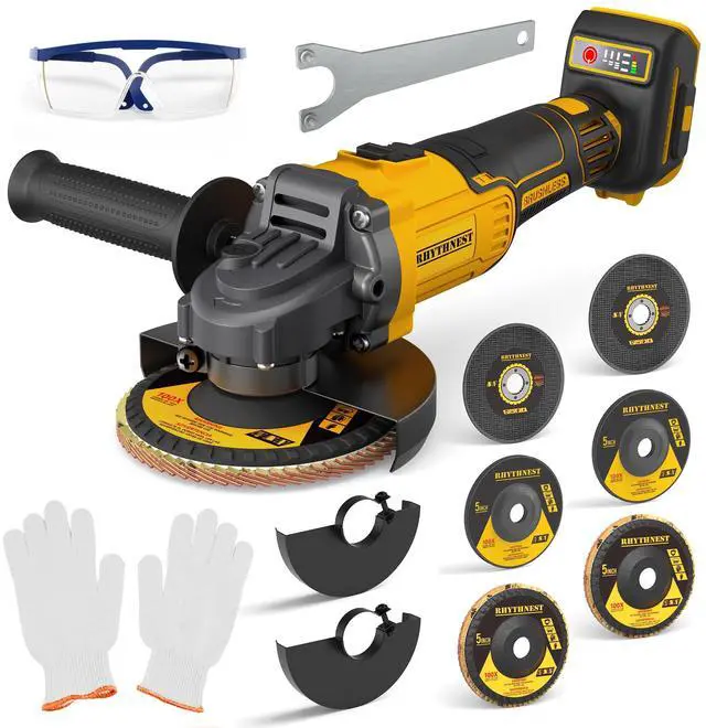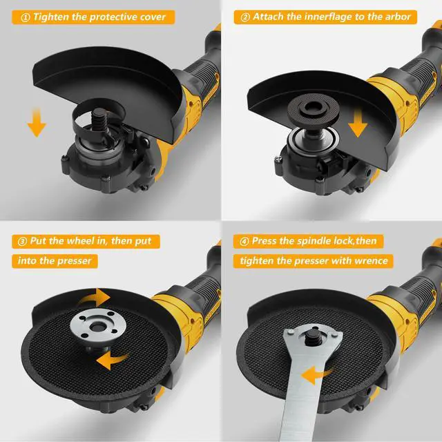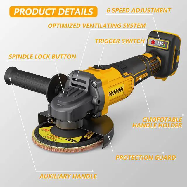 [Powerful Brushless Motor]:This cordless angle grinder is equipped with a high-performance brushless motor. It delivers stronger power, runs quieter, and dissipates heat faster than traditional motors while consuming less energy. With no carbon brushes to replace, it is built to last and designed for durable, efficient performance in any job