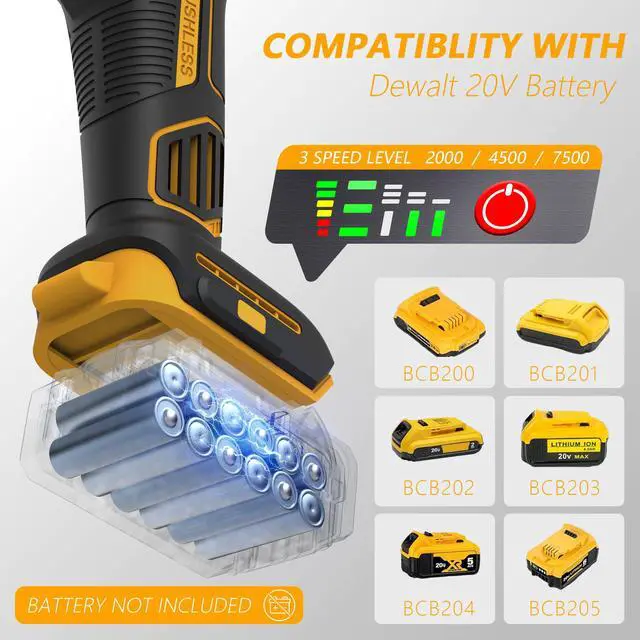 Cordless Angle Grinder 4-1/2" Compatible with DEWALT 20V Battery, 3 Variable Speed Amoladora Angular Included 6 Discs, Electric Grinder Tool for Cutting, Grinding, Polishing and Rust RemovalTool Only