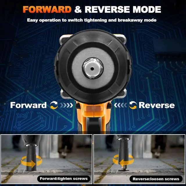 4.0Ah High-Capacity Battery: Our cordless impact wrench 1/2 inch features two 4.0Ah batteries for extended runtime and increased productivity. Its display light allows you to easily check its remaining power and remind you to charge in time.