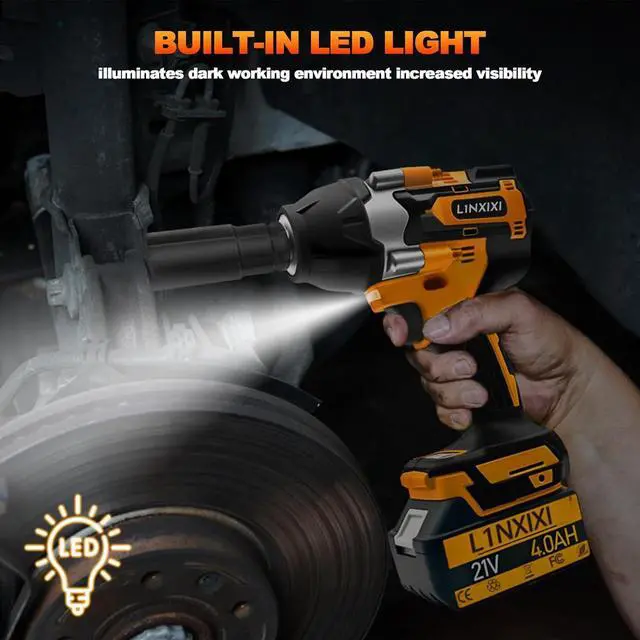 Cordless Convenience: This electric impact wrench 1/2 has a cordless design, enabling greater mobility and access in tight spaces, while its built-in LED light allows you to work in dimly lit environments.