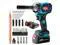 This 1/2-inch impact wrench is powered by a high-performance brushless motor, delivering lower noise, longer service life, and spark-free operation. The wrench provides a maximum fastening torque of 500 N·m (370 ft-lbs) and a maximum breakaway torque of 550 N·m (406 ft-lbs), making it suitable for demanding applications such as removing stubborn bolts and tightening car lug nuts. Equipped with three variable speed settings (01500 / 2100 / 2600 RPM), this cordless impact wrench allows precise control for different tasks. A built-in LED work light automatically illuminates dark or low-visibility work areas for improved accuracy and safety. The package includes 2.0Ah or 5.2Ah lithium batteries, a fast charger, and 25 accessories.