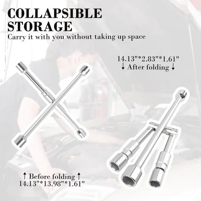 PORTABLE FOLDABLE 4 WAY LUG WRENCH: EFFORTLESS VEHICLE MAINTENANCE!