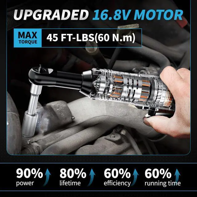 [Powerful Motor]: This electric wrench features an enhanced 16.8V pure copper motor, delivering a maximum torque of 40 ft-lbs and speeds up to 550 RPM. Moreover, the advanced dual cooling channels rapidly dissipate heat, maintaining stable temperatures for consistent performance