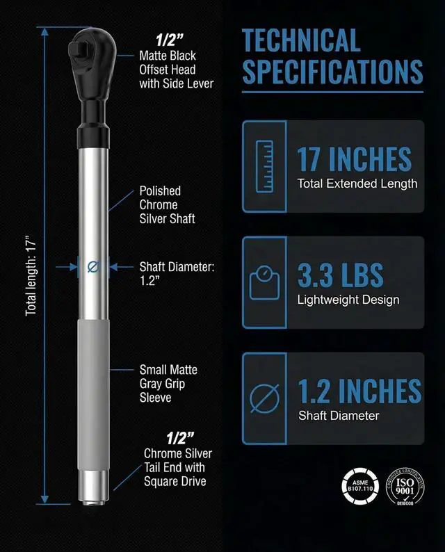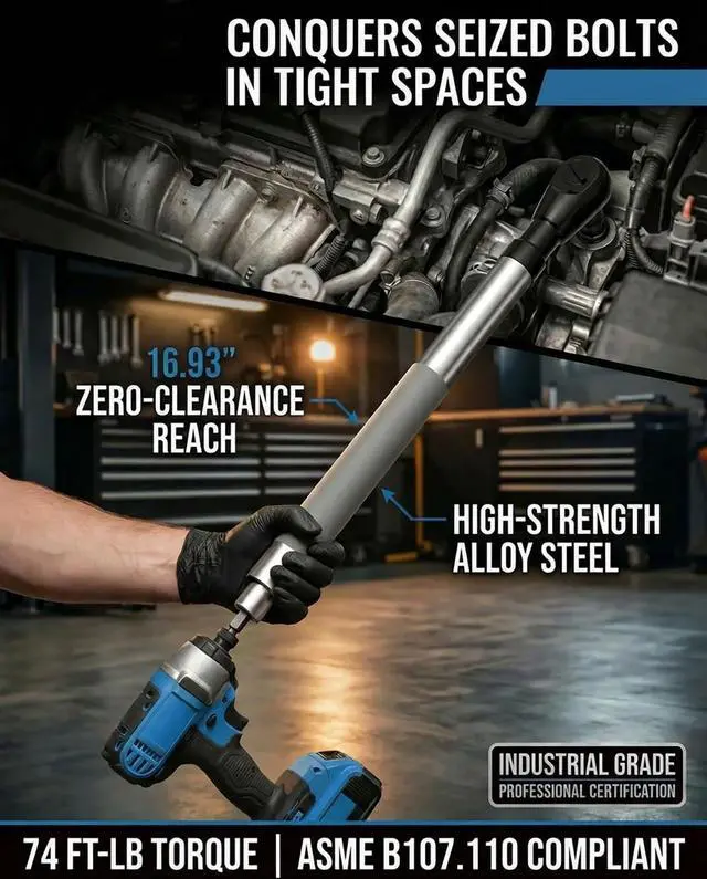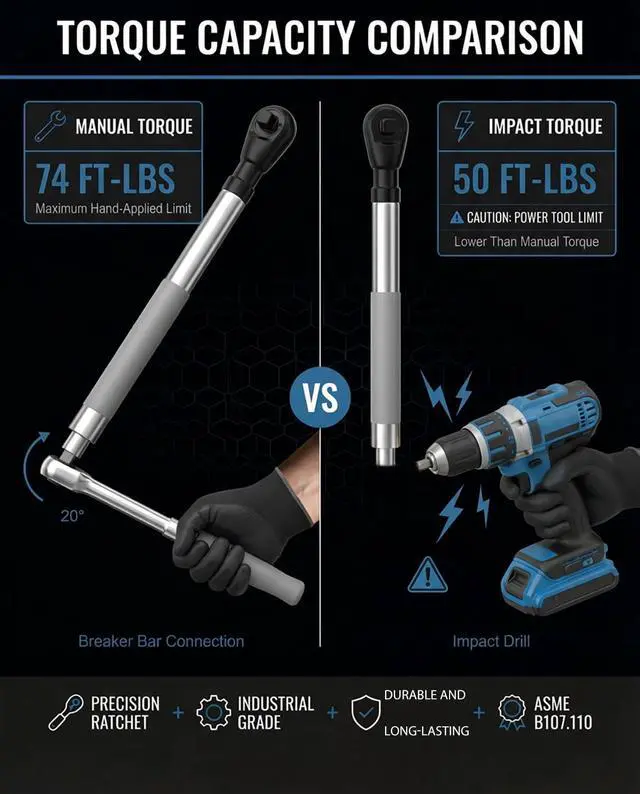Crafted from industrial chrome-vanadium steel, our wrench resists cracking and wear even under extreme pressure. The tungsten steel drive axle handles 885+ lb-in of torque - we've tested it on everything from rusted suspension bolts to overtightened engine components.