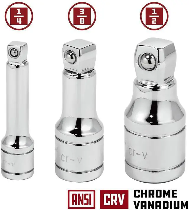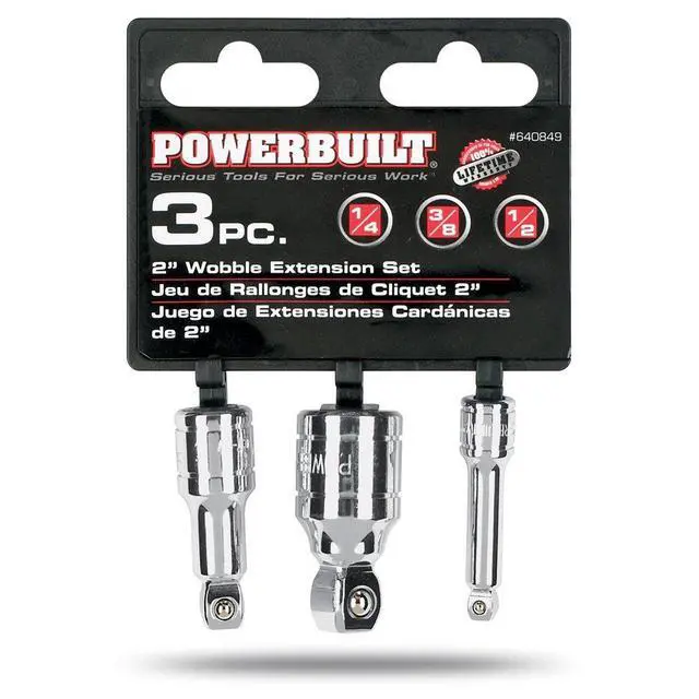 - Includes 1/4" Dr. 2", 3/8" Dr. 2" and 1/2" Dr. 2" wobble extension bars