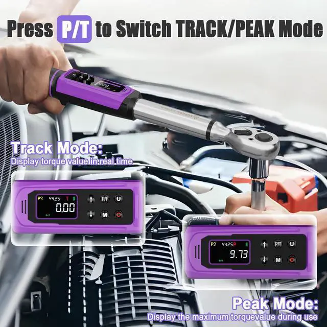Absolutely. This electric torque wrench features a large backlit color screen for clear readings in dark garages or tight engine bays. The 3/8 torque wrench digital also provides visual, vibration, and beep alerts when target torque is reached.