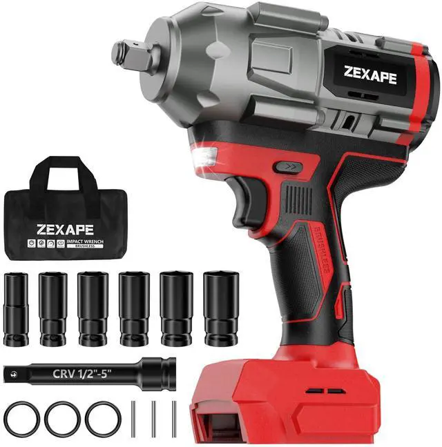 Work in Any Light & Complete Ready-to-Use Kit The built-in LED work light illuminates dark engine bays, under-car shadows, and dim workspaces, ensuring you can see exactly what you're doing. This all-in-one cordless impact wrench set comes with a 5" extension bar, 6 essential sockets (14mm,17mm,18mm,19mm,21mm,22mm), and a durable Oxford tool bag for ultimate convenience and portability.