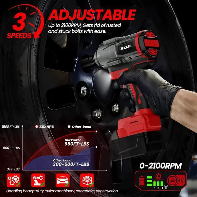 Accurate Control with 3-Speed Settings up to 2100 RPM Match the power to the task for unparalleled precision. Whether you're doing delicate DIY projects or heavy-duty automotive work, choose from 3 adjustable speed settings (1200/1600/2000 RPM). This prevents damage to softer materials and gives you complete command over every application.