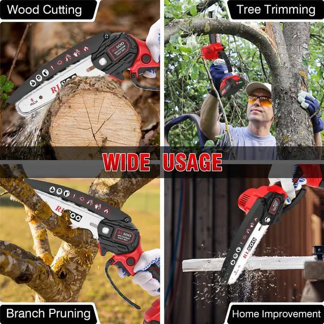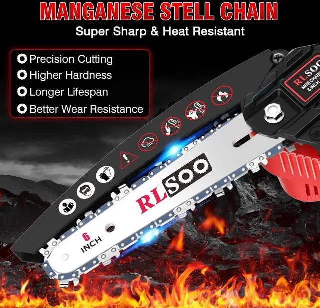 HIGH-EFFICIENCY UPGRADE MOTOR: Discover the RLSOO 6" compact electric chainsaw for shaping hedges and shrubs, featuring a upgrade pure copper motor, which delivers superior power, higher speeds, and a longer lifespan. Enjoy a low-noise operation with faster chain speeds, enhancing your efficiency for cutting, trimming and cutting PVC pipe for DIY like never before