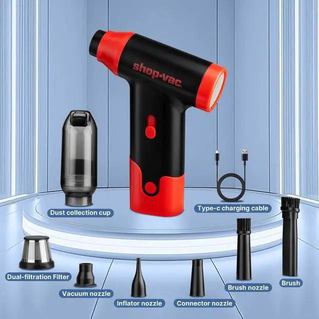 2-in-1 Blower & Vacuum Function: Designed with dual modes for blowing and suction, this cordless air duster is perfect for multiple cleaning scenariosfrom blowing leaves off your car windshield to vacuuming dust from your keyboard or desk. Switch effortlessly between functions to handle debris, dust, or inflation tasks with ease.