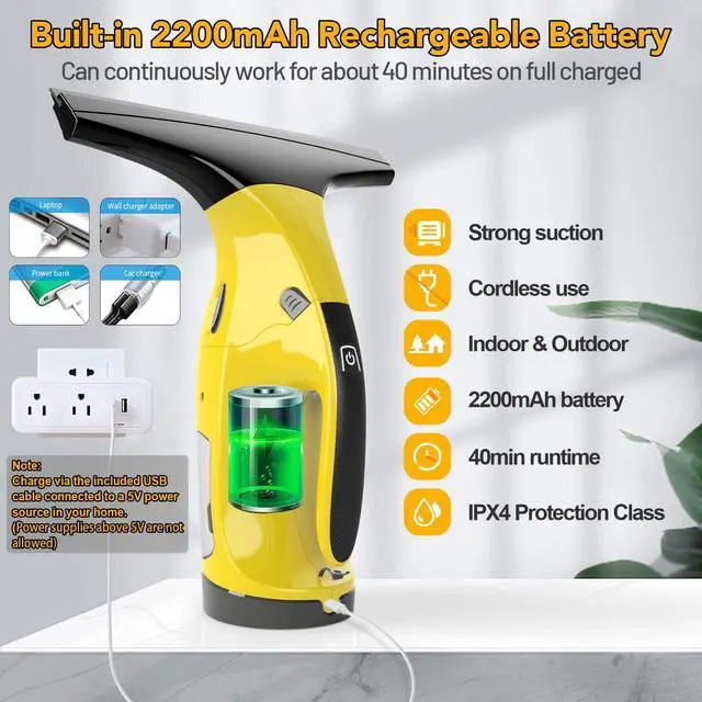This window vac can work continuously for about 40 minutes on full charged, avoiding frequent charging during use, save the time of cleaning.