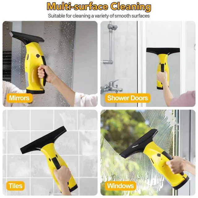 High power motor brings 1.1KPa strong suction which can clean up the window easily without any dirty water, drips or streaks left.