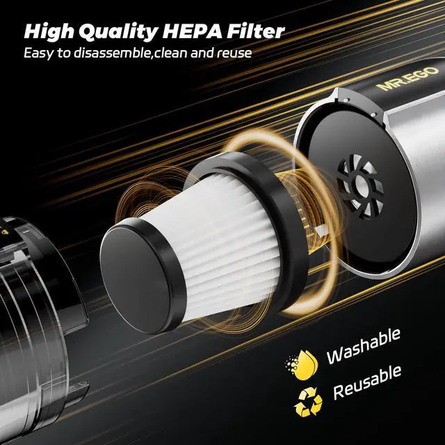 100,000 RPM/20000Pa Powerful SuctionEquipped with a 100,000 RPM brushless motor, the MR.EGO car vacuum cleaner provides strong, consistent 20000Pa suction to efficiently remove stubborn dust, crumbs, and debris from car crevices, desktops, and keyboards