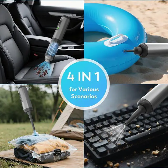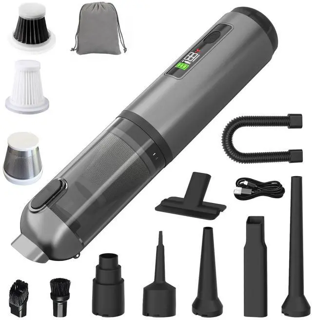 KedeeSparkle: The Ultimate All-in-One Cleaning Solution for Modern Life Tired of bulky vacuums and weak suction? The KedeeSparkle 22,000Pa Cordless Car Vacuum is here to redefine your cleaning routine. Whether you are tackling pet hair on the sofa, dust in your car's tightest corners, or inflating air mattresses for a camping trip, our 4-in-1 device is the only tool youll ever need. Unmatched Performance: With a peak suction of 22,000Pa, it outperforms standard portable vacuums by nearly 25%. The brushless motor technology ensures higher efficiency and a longer lifespan. Visualize Your Power: The upgraded LED display ensures you are always in the loop, showing exactly how much battery is left and which mode you are using. Breathe Easier: Our dual-layer metal filtration system captures 99.9% of particles, preventing secondary pollution and protecting the motor from debris damage. Compact & Travel Ready: Small enough to fit in your glove box or backpack, yet powerful enough to clean an entire SUV. Package Includes: 1x KedeeSparkle Handheld Vacuum, Multiple Nozzle Attachments, Type-C Charging Cable, User Manual.