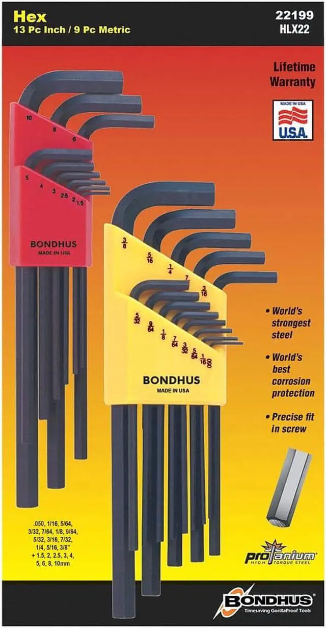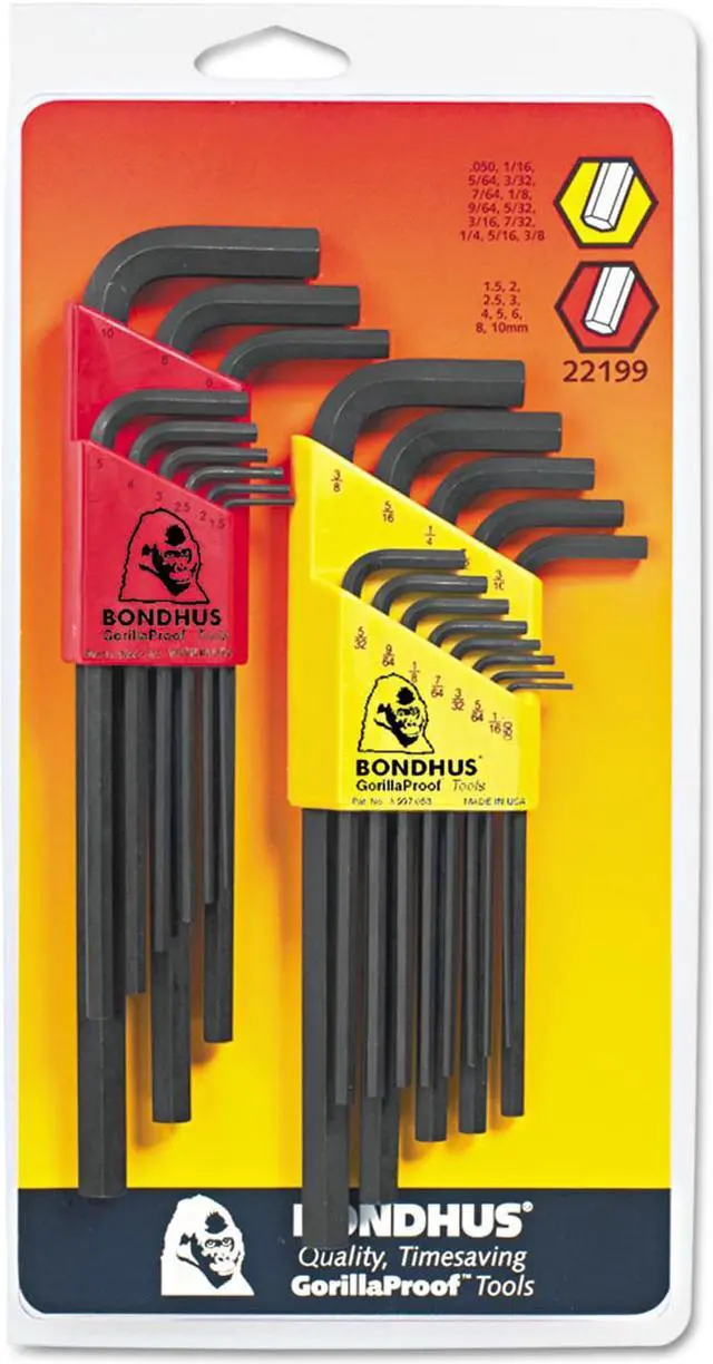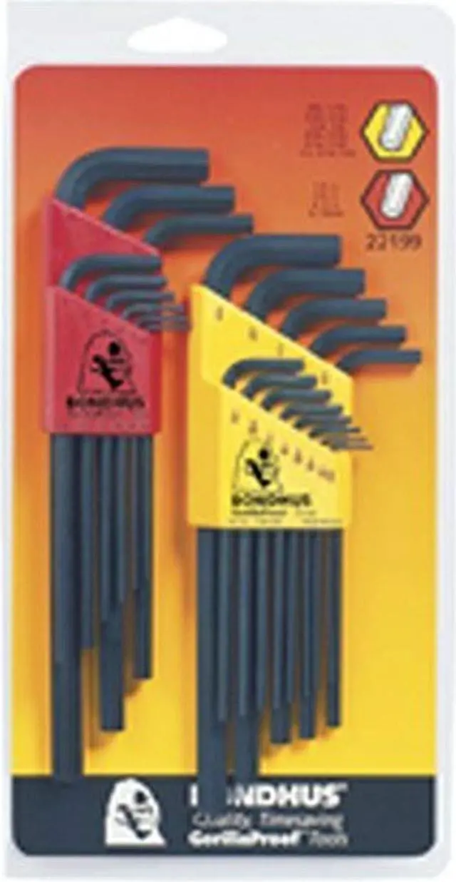 Hex L-Wrench Combination Sets, 22 per set, Hex Tip, Inch/MetricCorrosion resistanceSharper corners for extra grab