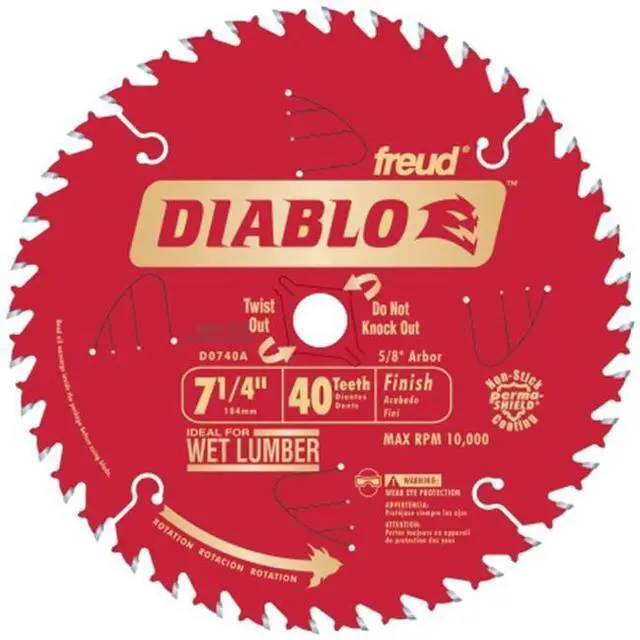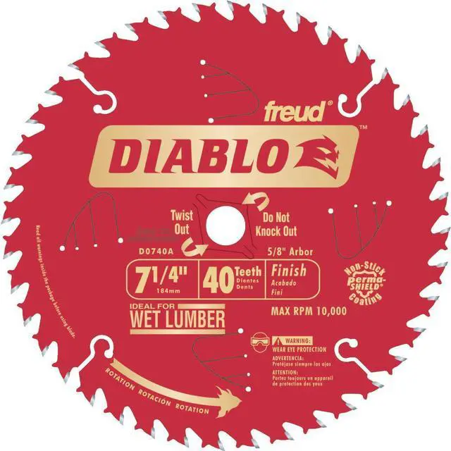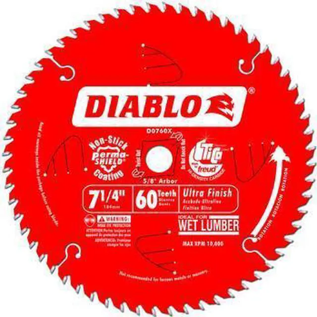 Circular saw blade. Great for finishing work. Ideal for wet lumber. Super thin laser cut kerf. Perms-SHIELD non-stick coating. Laser cut heat expansion slots. Tri-metal shock resistant brazing. TiCo Hi-density Carbide blade. 12, 000 maximum RPM.