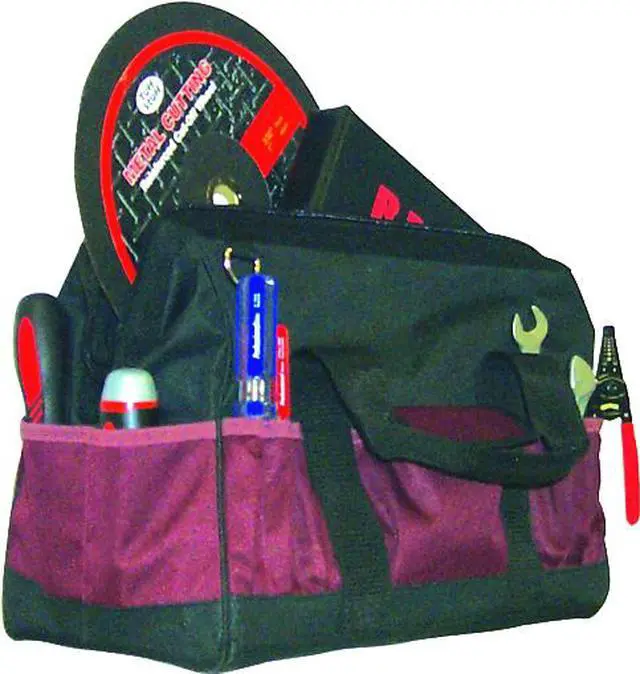 Tuff Stuff, 59113, 17-1/2", Heavy Duty Polyester Fabric construction, Tool Bag, 26 Pockets, 8 inside pockets and 18 assorted sized outside pockets, "Open wide" E-Z access zipper, 17-1/2" L x 9-1/2" W x 13" H.