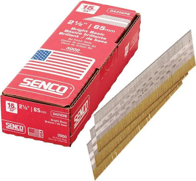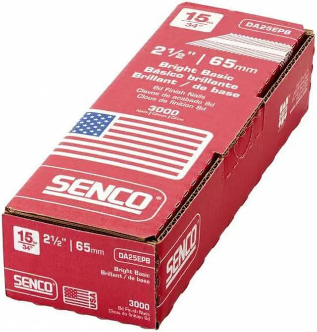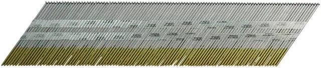 Angled Finish Nails, 2 1/2 In. L, PK3000, Overall Length 2 1/2 in, Shank Diameter 0.072 in, Gauge 15 ga, Product Type Finishing Nails, Material Steel, Finish Plain, Head Type Brad, Head Diameter 9/64 in, Shank Type Smooth, Point Type Conical, Collation Type Tape, Collation Configuration Strip, Collation Angle 34 Degrees, For Use With 15 ga Tools, Manufacturer Location Made in USA*, Package Quantity 3000. This item has been restricted from sale in the following state (s): []