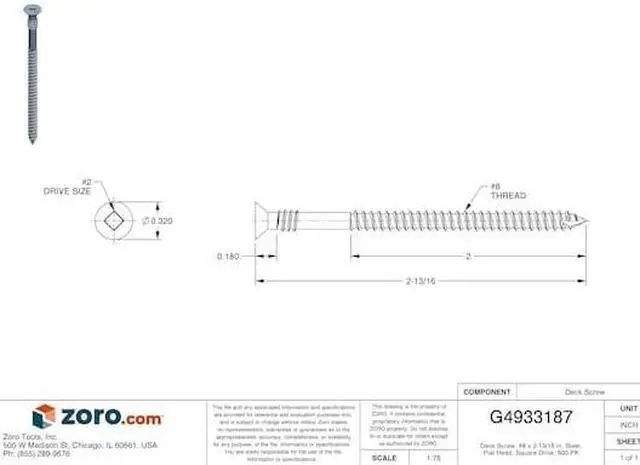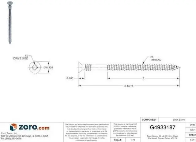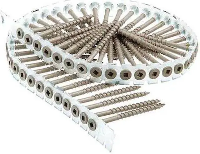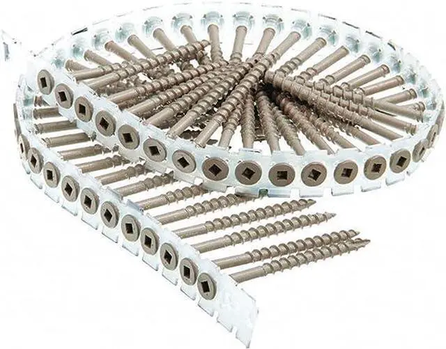 Collated Screw, Type Deck Screw, Head Type Flat, Finish Plain, Material Stainless Steel, Screw Size #8, Fastener Length 2 13/16 in, Drive Square, Drive Size #2, System of Measurement Inch, Application For Docks, For Decks, For Fencing, For Siding, For Tile Roofing, Dimensional Standards ASTM B117, Features Exceeds 1000-Hour Salt Spray Test, Square Recess, For Use in Systems Decks, Docks, Fencing, Siding, Tile Roofing, Head Height 0.18 in, Head Width 0.32 in, Includes Nut Nut Not Included.