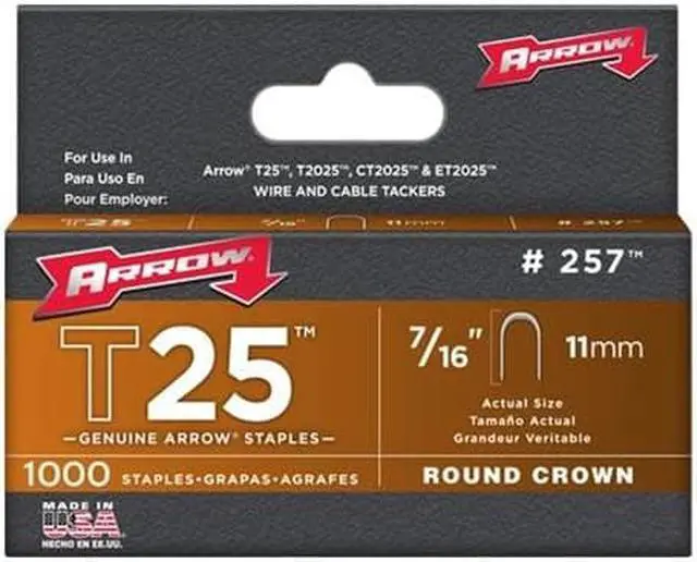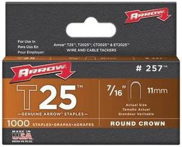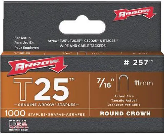 Arrow Fastener 257 T25 7/16 Inch (11mm) Round crown Staples, 1000/Pk.