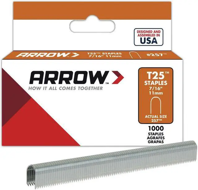 Arrow Fastener 257 T25 7/16 Inch (11mm) Staples, 1000/Pk
