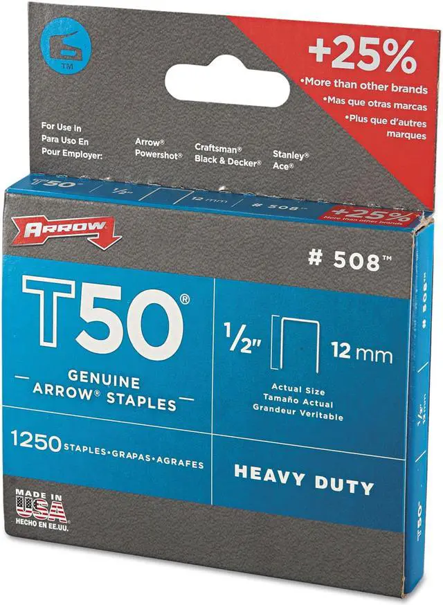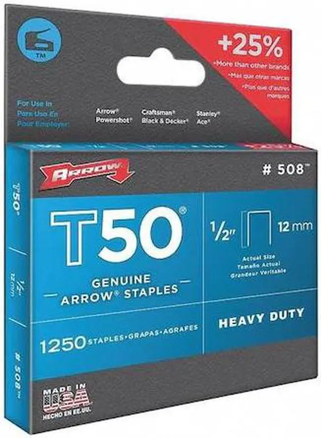 These T50 1/2-in. Staples,1,250 pk, are for use with T50-staple compatible staplers made by Arrow Fastener. . 1,250 1/2" type T50 staple gun staples
