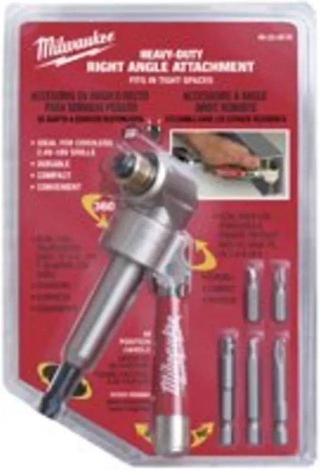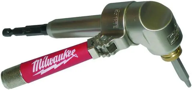 Milwaukee's Right Angle Attachment allows contractors to drive screws and drill holes in tight, difficult work areas. This attachment is ideal for cordless drills and uses standard 1/4 in. hex accessories. It has a durable all-metal housing and steel gears with ball bearing construction which allows this adapter to handle up to 235 in-lbs of torque. The compact design measures only 2 inches wide allowing it to fit in tight spaces where work is difficult to perform. The convenient quick change chuck accepts standard 1/4 in. hex drive accessories.