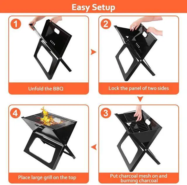 *Easy Setup:Simple two-step set up makes this grill a must for grilling on the go. When it is unfolded,it forms a triangular support on ground to stay stable during use.