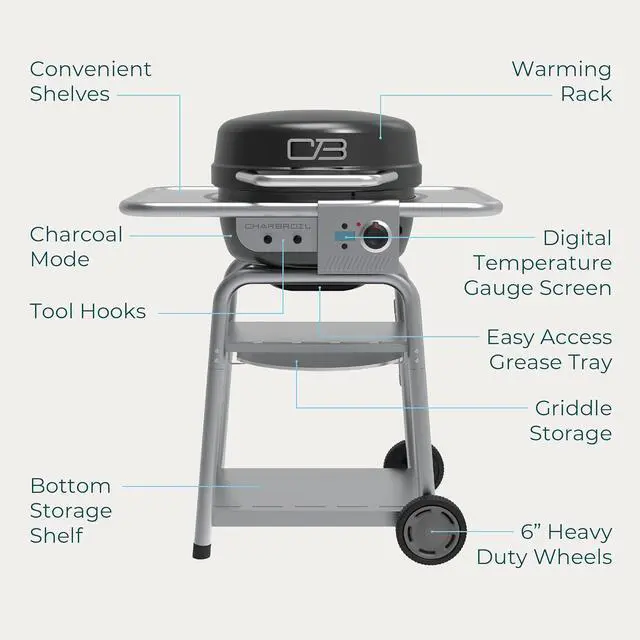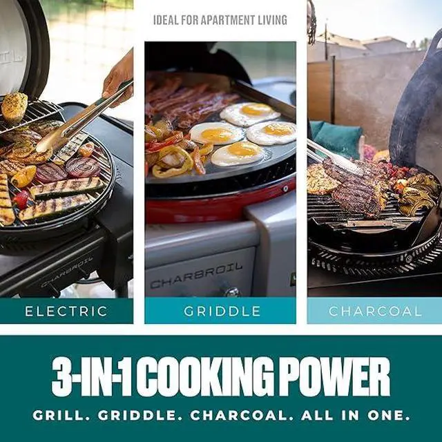DUAL FUEL 3-IN-1 ELECTRIC, GRIDDLE + CHARCOAL: Powered by the dynamic Electric2Coal cooking system, this outdoor electric grill can seamlessly transform into an outdoor charcoal grill for those days when youre craving that extra smoky flavor. BONUS: Add wood chunks to the charcoal rack to get even more smoke flavor!