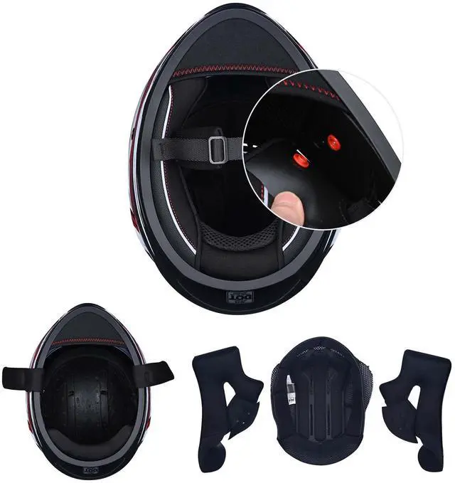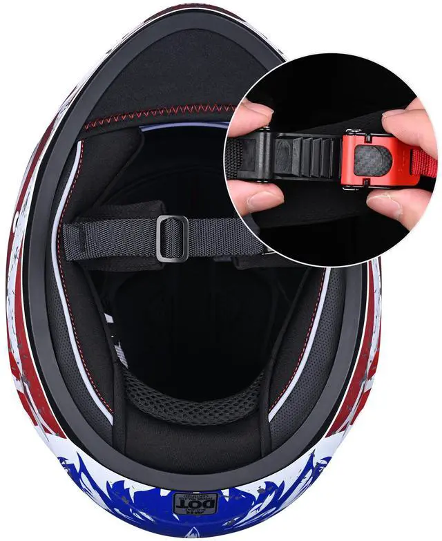 - Easy Cleaning & Quick Release Buckle - Removable and washable liner and cheek pad for easy cleaning with mild soap water, maintaining the hygiene of your helmet; With a D-ring quick release buckle on the adjustable chin strap for easy getting on and off, it allows to adjust strap length to fit different people