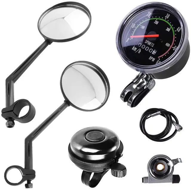1 pair bicycle rear view mirrors 1 pack classical old school style bike speedometer analog odometer and 1 pack aluminum cycling bell for 24-27.5 bicycle