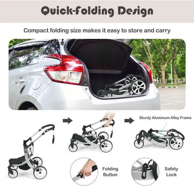 -Universal front wheels and shock-proof rear wheels suit even uneven roads