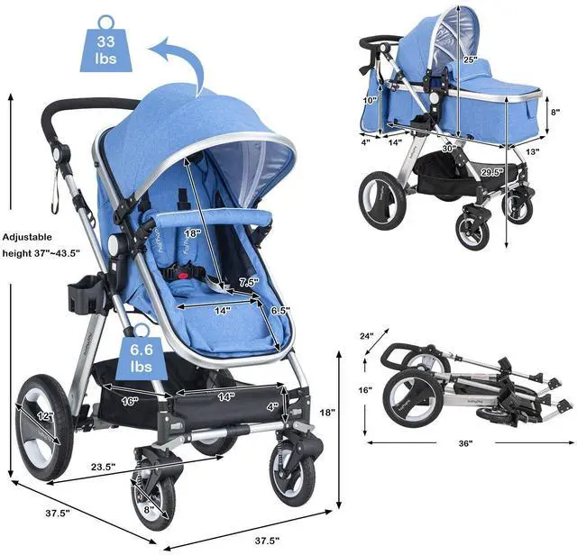 Fantastic Multi-features: An infant bassinet baby carriage can be a toddler seat stroller. Multi-position seat can be upright, semi-reclined, and then more deeply reclined. So it is suitable for babies from 0 to 3 years old. Reversible stroller seat makes it easy for babies to face the parents or to face the world.