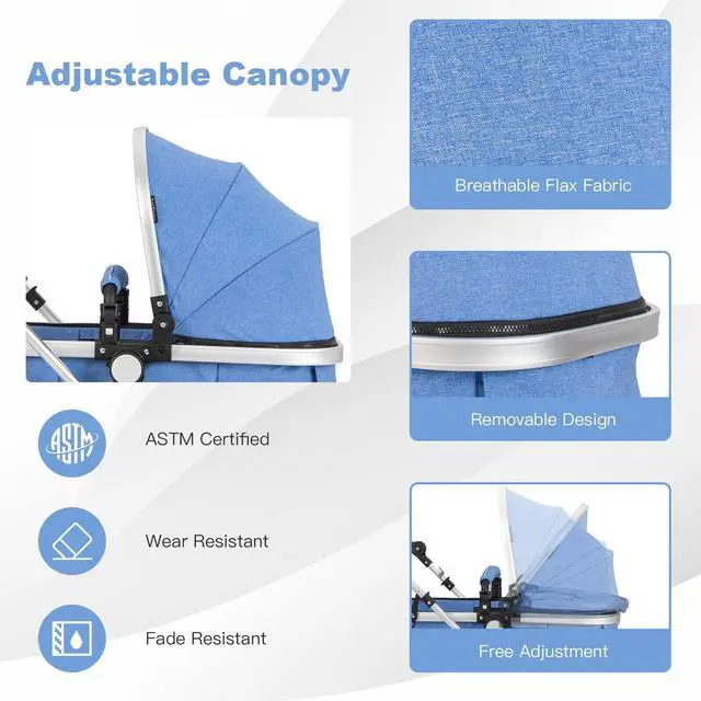 Heavy-duty Materials: The aluminium alloy frame is lighter than iron (or steel, copper) and will never rust so you can use it longer. The wearable non-toxic and breathable linen can well-protect your babies from rains or harmful rays. Non-toxic first class PA plastics are not easily oxidized or cracked.