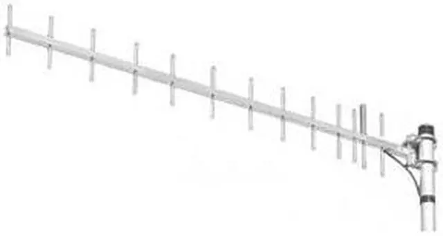Laird PC9013N yagi antenna is designed for 800 MHz, ESMR, SMR, cellular or conventional applications. The 13-element antenna has 13 dBd gain and operates in the 902 - 928 MHz frequency range. This yagi antenna has a maximum power input of 200 watts and includes a 19 inch pigtail terminated with an N female connector. U-bolts; maximum mast diameter is 2-1/8 inches are supplied for mounting. This listing is for Each. Type of Jumper Included 19 Pigtail Item Length 53.5 in Maximum VSWR 1.5:1 Polarization Linear Type of Hardware Included U-Bolts Jumper Included Yes Gain dBd 13 dBd Connector Placement Pigtail Tuned Frequency (MHz) N/A Item Weight 3.12 lb Horizontal Beamwidth 40 deg Maximum Rated Wind Velocity 125 mile/h Qty/ Uom 1 Each Specific Frequency 902-928 MHz Vertical Beamwidth 35 deg Lightning Protection DC Ground Gain dBi 15.1 dBi RF Connectors N Female Maximum Power 200 W