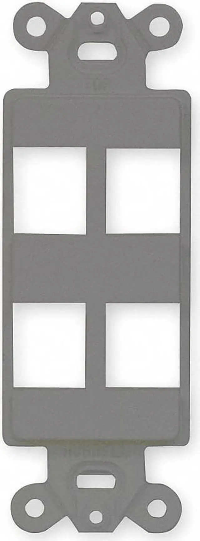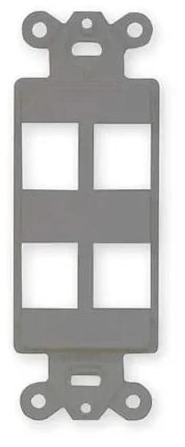 Outlet Frame, Compatible Module Type Keystone, Color Gray, Number of Ports 4, Overall Depth 3/8 in, Overall Height 4 in, Overall Width 1 1/2 in, Standards cUL Listed 1863, RoHS Compliant, UL Listed 1863. This item has been restricted from sale in the following state (s): []