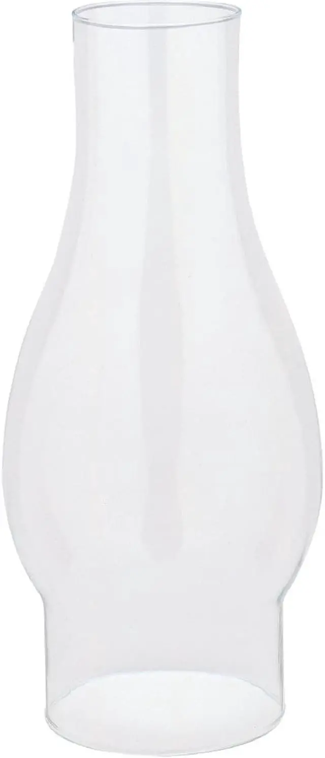Clear glass top opening replacement lamp chimney. Easy to install. 2 In. top opening. Chimney Height: 8-1/2 In. Color: Clear Material: Glass Bulge: 4 In. Fitter: 3 In. Top Opening: 2 In.