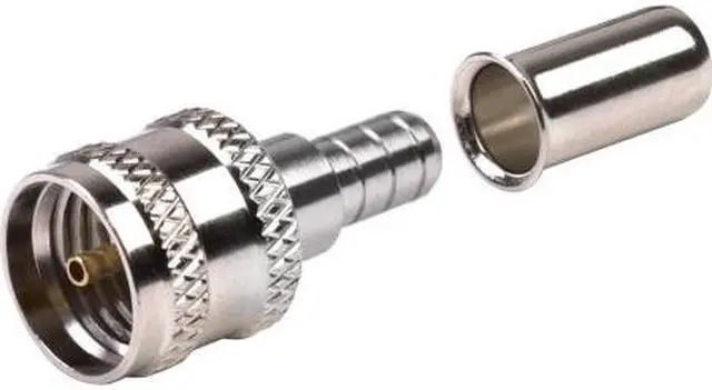 RF Industries - MiniUHF Male Crimp-RG58 RF INDUSTRIES Mini-UHF male connector for RG58/U, RG58A/U, RG141 and Ultralink cable. Nickle body, gold pin. AMP style, pin in body. 100 pk.