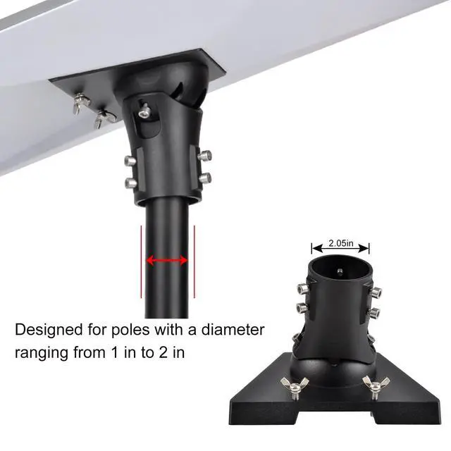 Wide Compatibility of the Pole. This pole mount adapter is designed to attach to a pole with a diameter from 1 in to 2 in ( 25mm to 51mm )