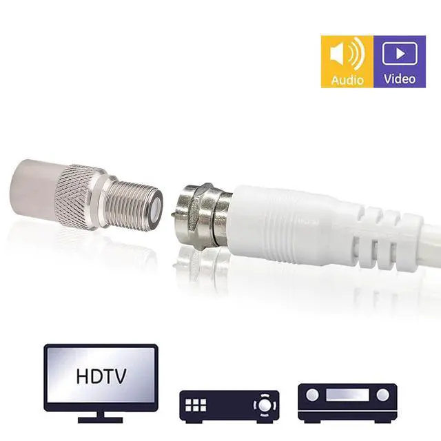 Applicable : Fits for Antenna, Satellite receiver,cable TV,RVers, Internet, RV Trailer, Coax Cable and so on. extremely low signal attenuation. Accommodates most Male F-Type connectors and wall plates for indoor settings alike.Commonly used on RG58, RG59, RG6, and RG11 coaxial (50Ohm) cable.