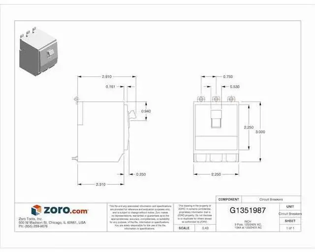 QO and QOB one, two and three pole thermal magnetic circuit breakers provide overcurrent protection and switching on ac and dc systems. These circuit breakers have an over center, trip free toggle mechanism with quick make, quick break action and positive handle indication. They also have VisiTrip trip indication, which provides a visual indication that the circuit breaker has tripped and interrupted the circuit. A full line of features and factory installed accessories are also available such as shunt trips, auxiliary switches and alarm switches. This 3 pole QO circuit breaker is rated at 20A at 120/240VAC. This unit provides 10kA breaking capacity and plug in mounting. QO circuit breakers are UL Listed under UL File E84967 and are CSA Certified under CSA Master Contract 153555.